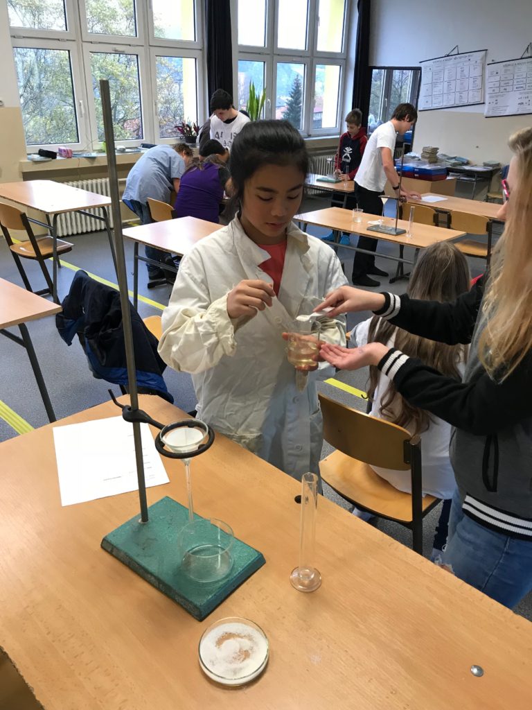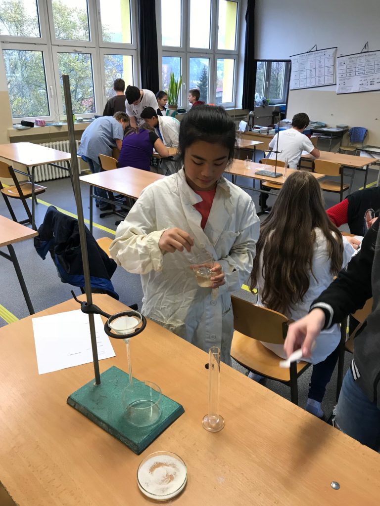 Chemie v praxi Posted on 14.11.2017 by ZŠ KARLA IV. Žáci 8.A si vyzkoušeli své teoretické znalosti z chemie ve své první laboratorní práci.