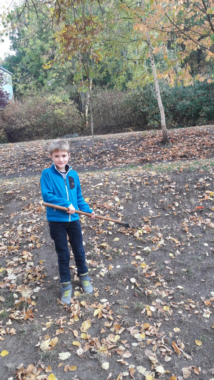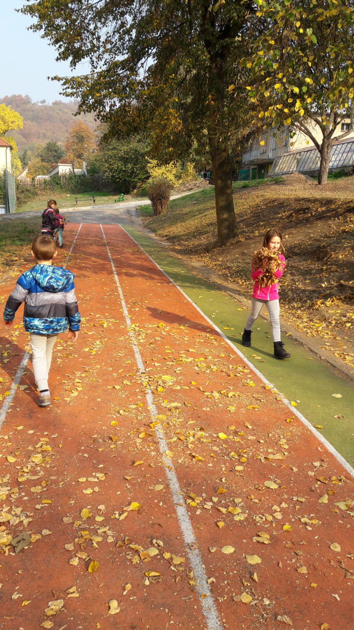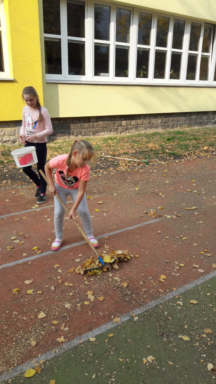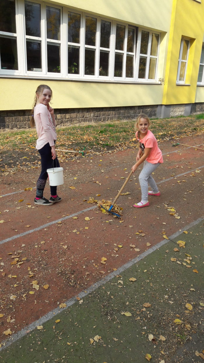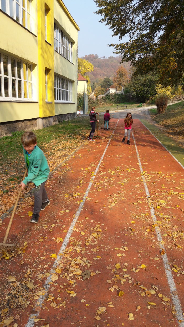 Pomalu nastal podzim, s dětmi jsme se pustili do úklidu školní zahrady. Nejprve jsme sesbírali kaštany a ořechy a na konci října jsme se vrhli na hrabání listí. Děti ze školní družiny práce moc bavila a povedlo se jim dokonce naplnit velký vak na listí.