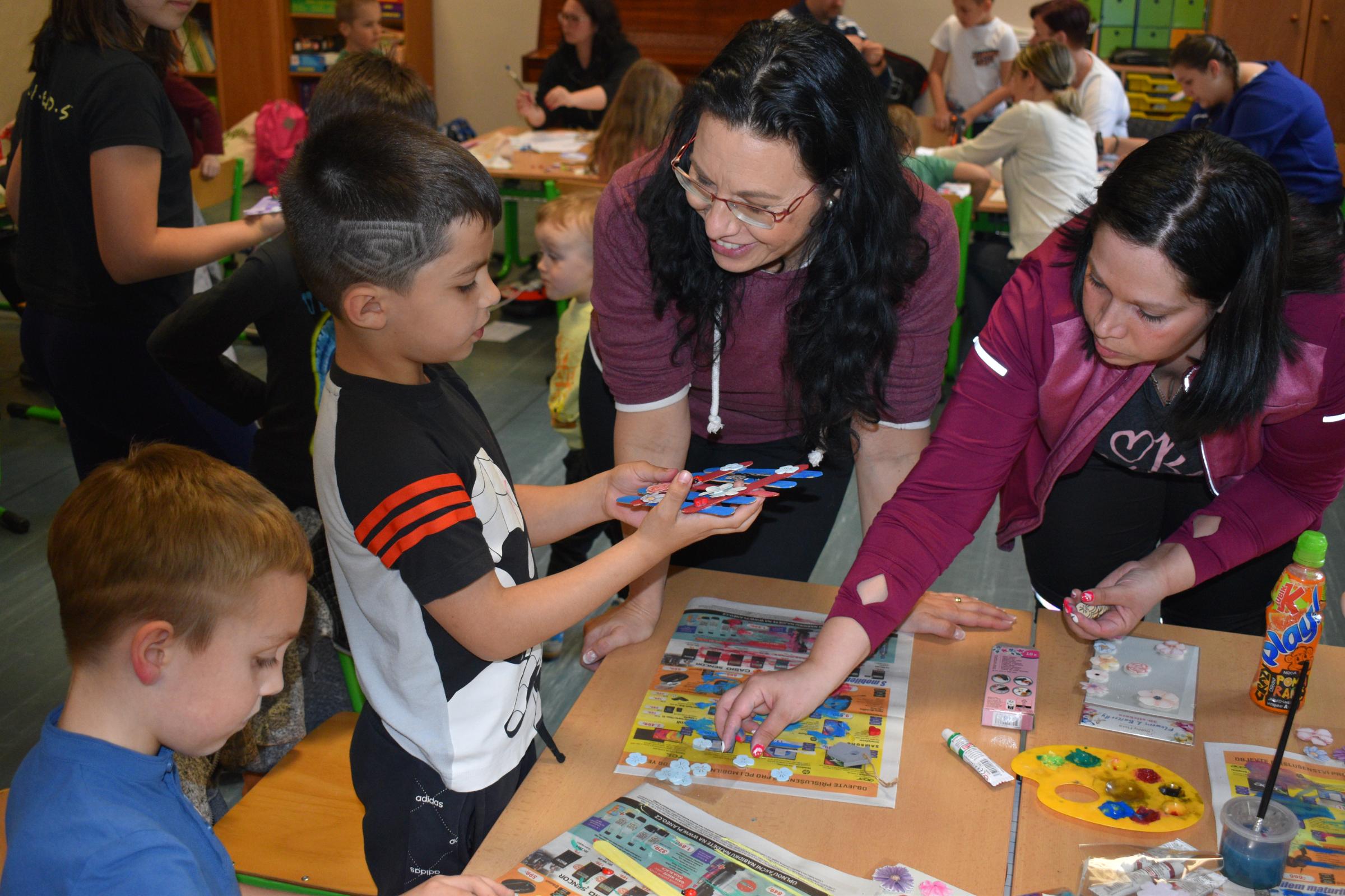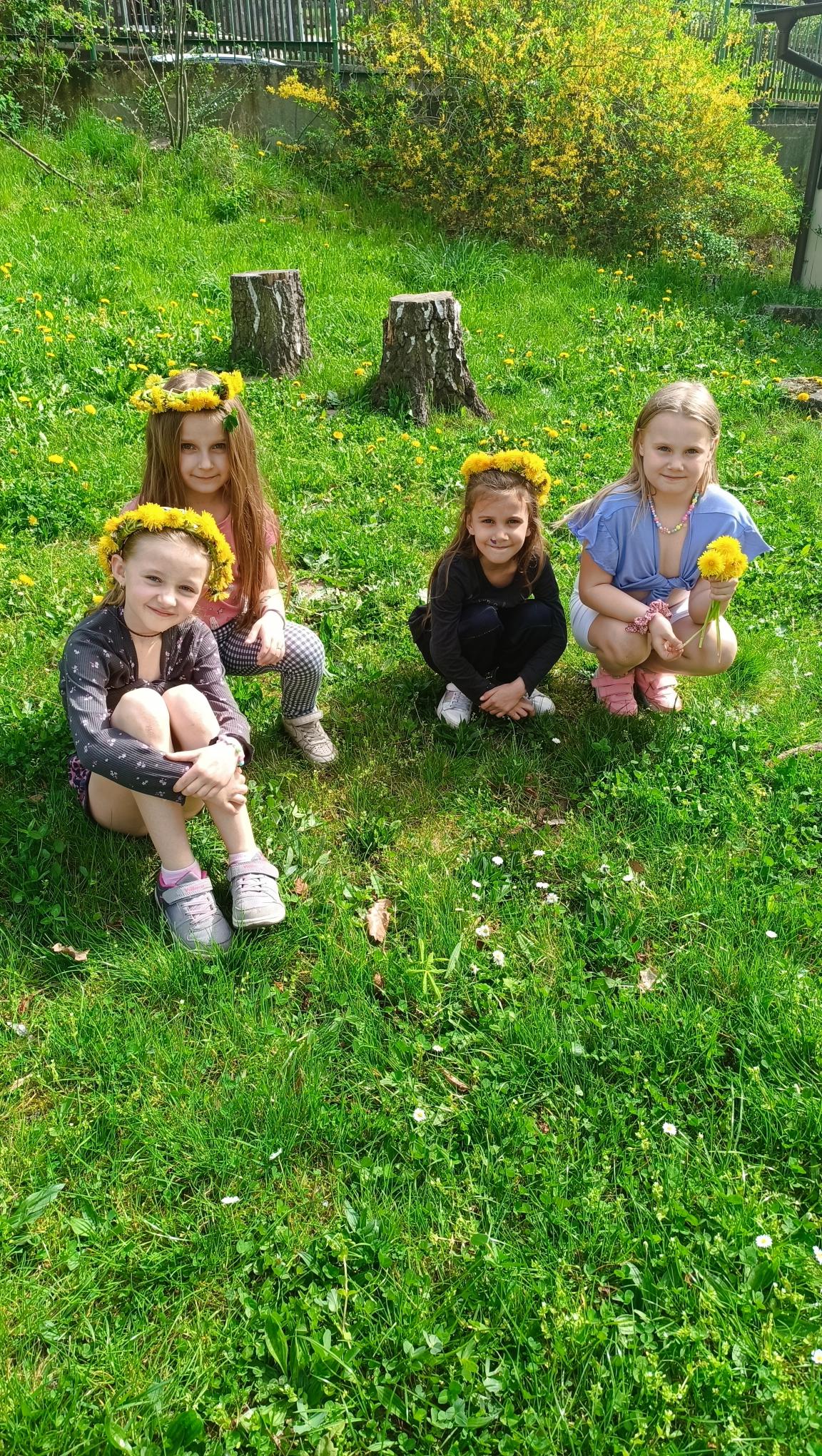 Během jarních měsíců na nudu vůbec nemáme čas. Připravujeme se na Velikonoce nebo Den matek, také u nás byl kouzelník. Hrajeme hry, malujeme, zpíváme. Pokud neprší, jsme denně na školní zahradě, kde si každý najde, co ho baví – míčové hry, pískovistě, stavba domečků z klacíků. Děvčata opět pletla věnečky z pampelišek, jako kdysi jejich maminky či babičky.