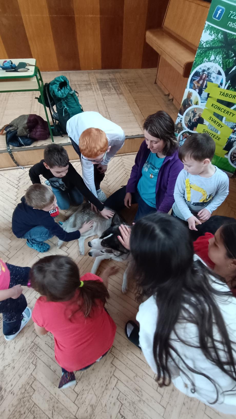 Husky a musherka ve školní družině
