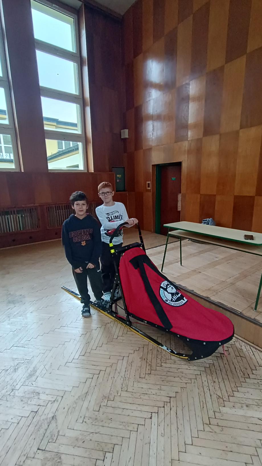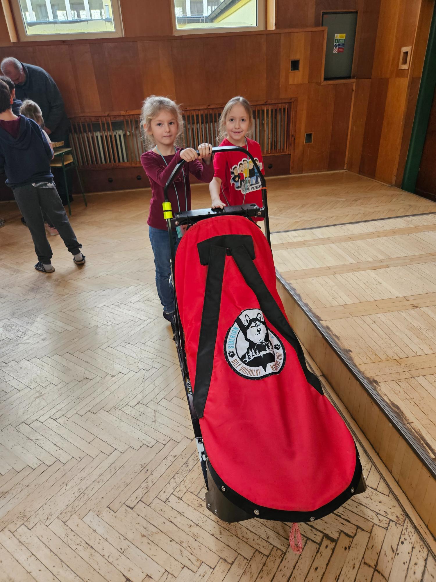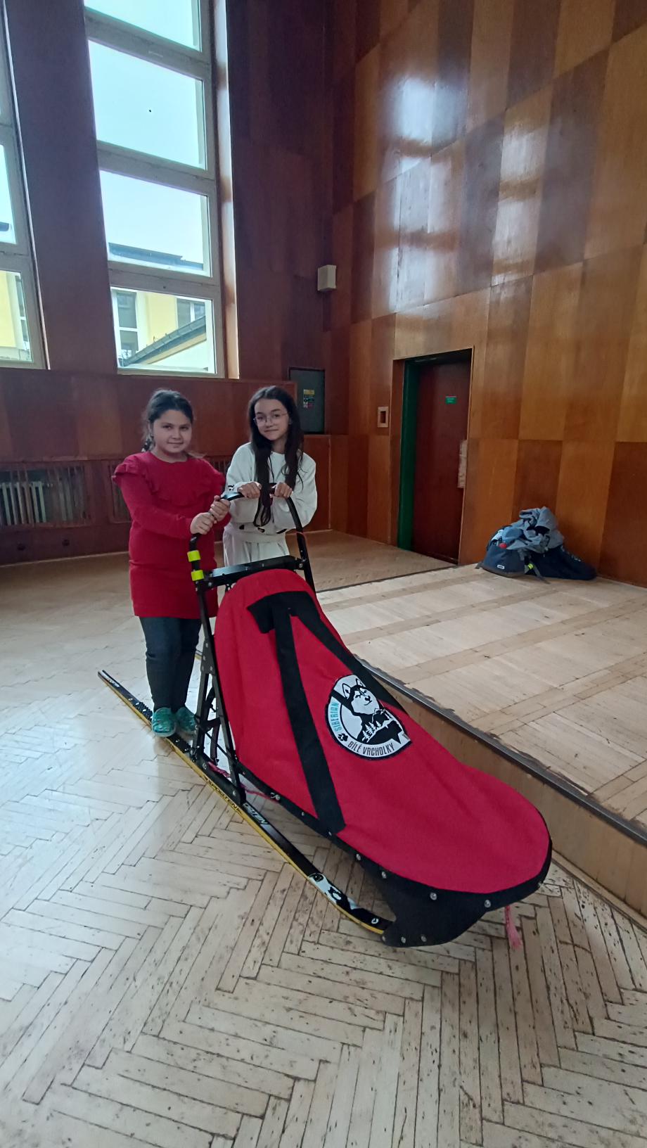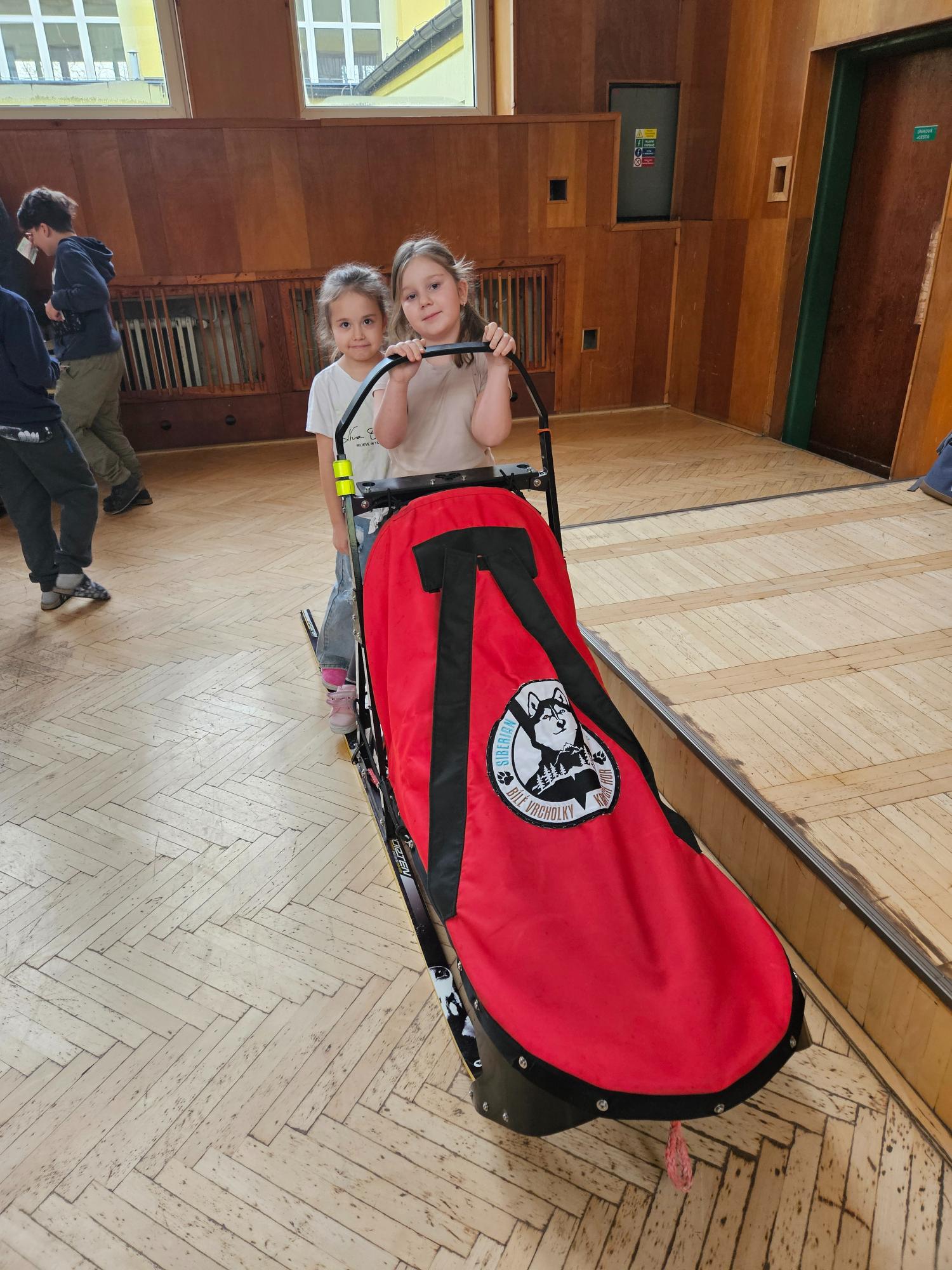 Do naší družiny za námi přijela musherka Věra Gráfová se svými psy husky a pan Radek Jareš. Paní musherka nám představila své 2 psy, povídala o jejich původu, schopnostech, povaze, o potřebě pohybu. Pan Jareš odpovídal na zvídavé dotazy děti – např. co psi jedí, kolik váží, jak těžké sáně uvezou atp. Pak si děti mohly závodní sáně prohlédnout a vyzkoušet. Ovšem největší radost děti měly, když si mohly pohladit a pohrát se psy.