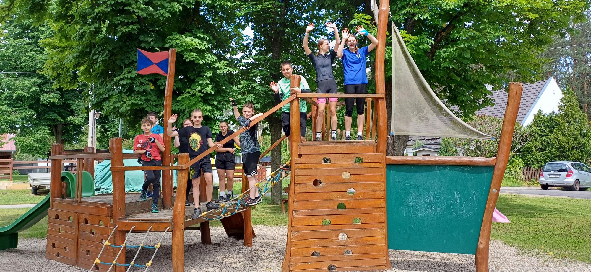 Na začátku června proběhl ve Starých Splavech náš tradiční sportovní kurz. Počasí bylo sice značně proměnlivé, ale přesto jsme si si pobyt náramně užili a domů se z expedice Staré Splavy vraceli plní zážitků. Cyklisté najezdili za ten týden 127 km- do Zahrádek a do “Alp” (tak někteří nazvali 1. den mírně zvlněnou krajinu Máchova jezera), na Jestřebí, Bezděz, na letiště v Ralsku a do Mimoně,turisté nachodili krásných 51 km. Podívali se např. do Starých Splavů, Jestřebí, roklí kolem jezera a na mnoho dalších zajímavých míst. Ve středu nám přálo počasí, a tak jsme si při odpočinkovém dni užili i pláže u jezera a her u vody i volejbalový turnaj na hřišti. Každý večer jsme stihli ještě sportovní i společenské hry, několikrát vynikající zmrzlinu U Leknínu a také večerní stezku odvahy.Prostě parádně strávený týden a už se těšíme na příští rok!