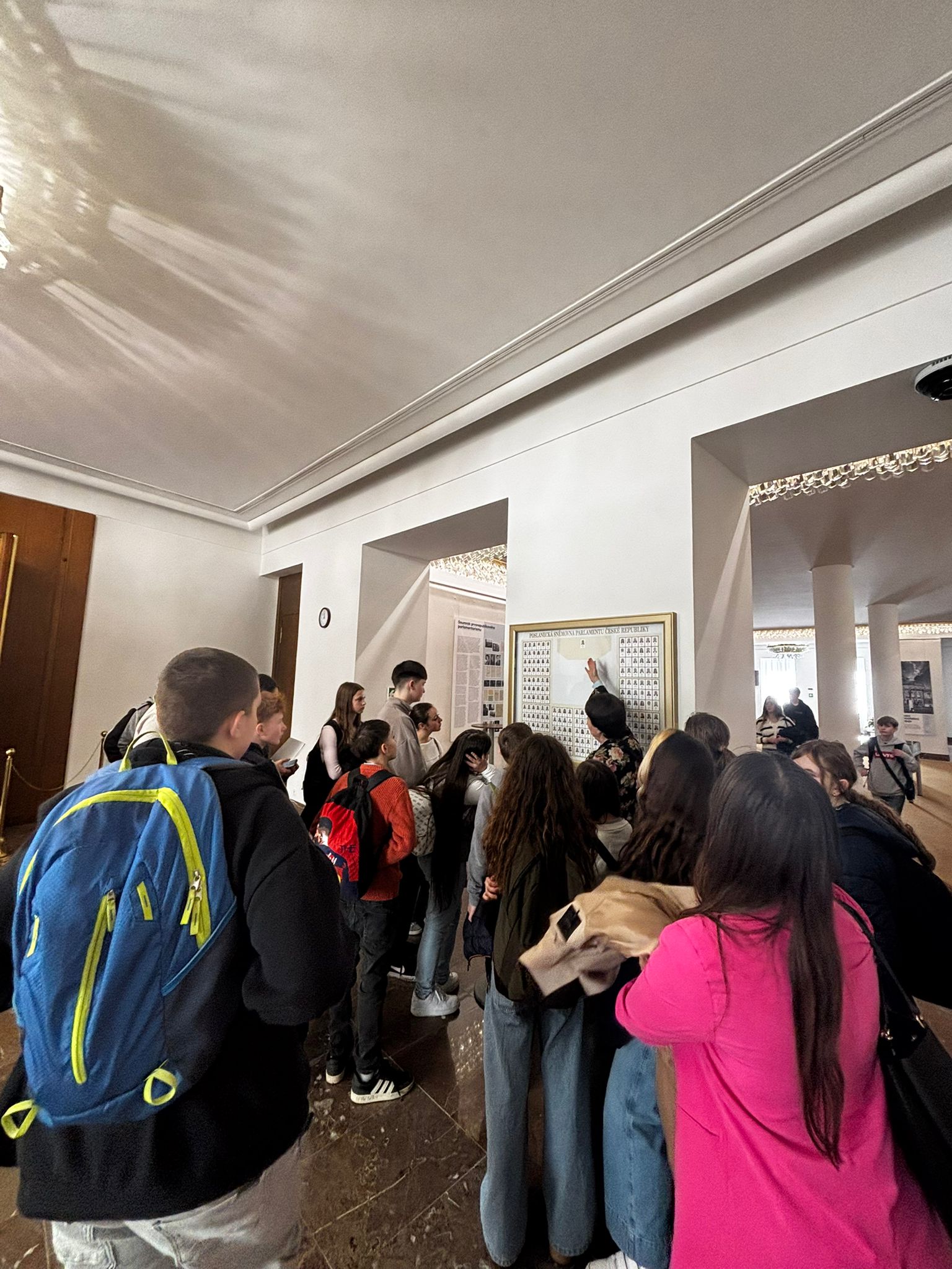 Exkurze začala v 10 hodin a pro všechny byla velmi přínosná. Žáci si prohlédli prostory Poslanecké sněmovny, dozvěděli se mnoho nových informací o fungování parlamentu a demokracie a upevnili si své dosavadní znalosti. Velkým zážitkem byla možnost nahlédnout přímo do jednacího sálu – někteří žáci se dokonce nechali vyfotit u řečnického pultíku 📸.